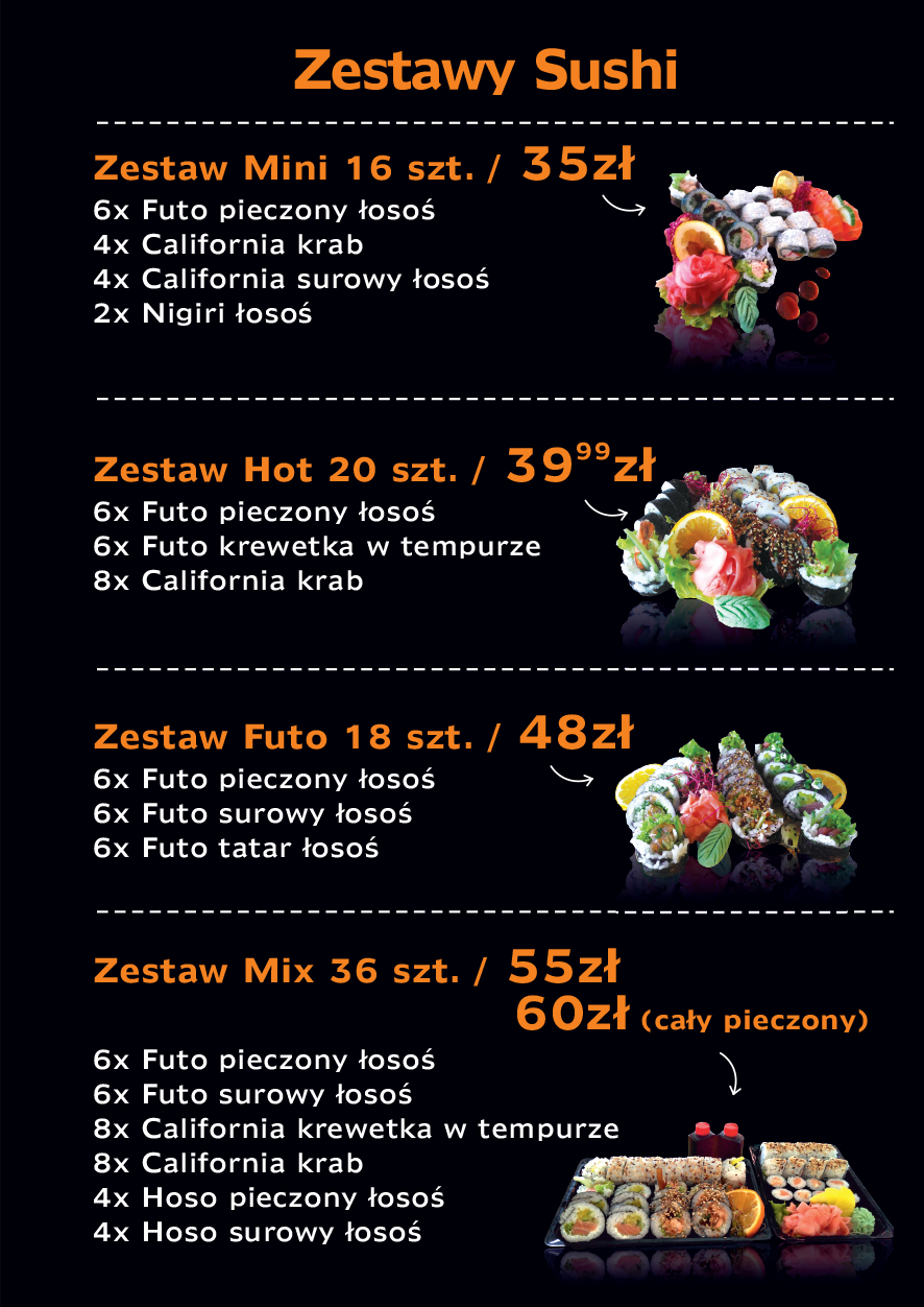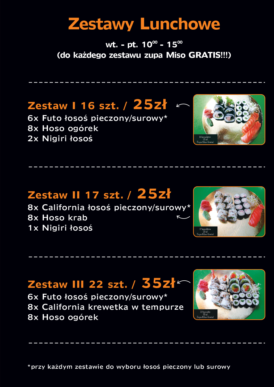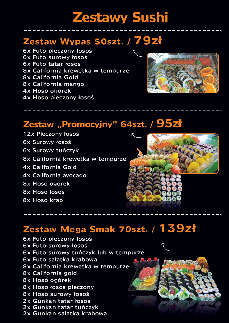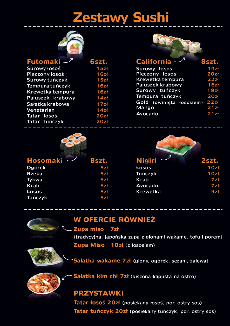 Profesjonalnie przyrządzane Sushi za maksymalnie niską cenę. Przyjdź i spróbuj na miejscu Pływalnia OSiR w Wołominie ul.korsaka 4 lub zamów Zestaw do domu tel.